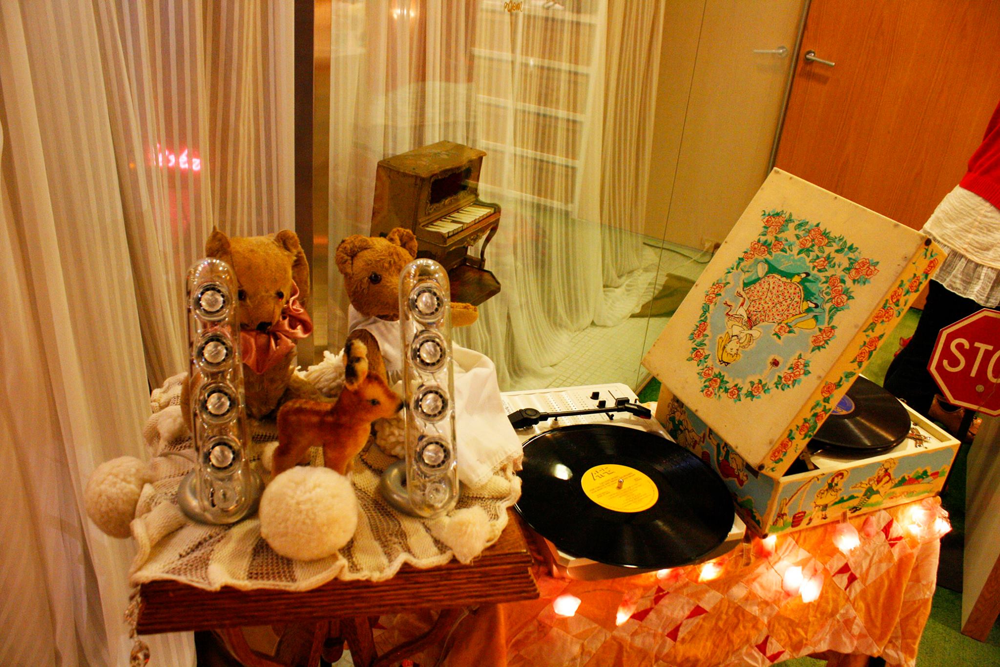 チャイルディッシュなDJプレイを展開。蓄音機から流れるSP盤の温かい音色をお楽しみ下さい。