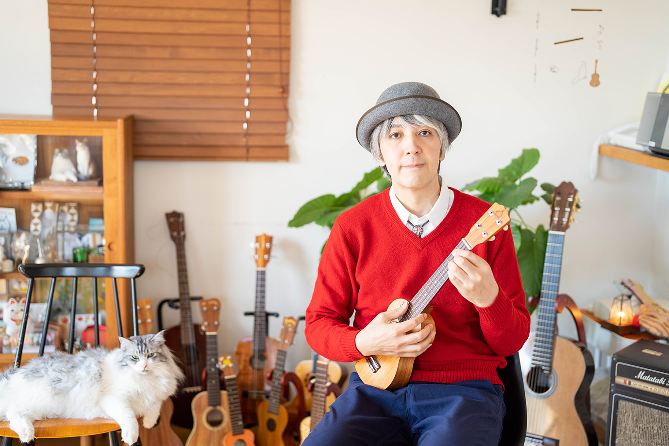 近藤研二 : 音楽家。作編曲家として、NHK Eテレ『0655』『2355』、米国第81回アカデミー賞短編アニメーション賞を受賞した『つみきのいえ』、TVアニメ『しろくまカフェ』『小林さんちのメイドラゴンS』など、ギタリスト、ウクレレ奏者として、2006年『ウクレレ・モーツァルト』、2015年ソロアルバム『子猫のロンド』、2019年『木モレ日ノ月』などの作品がある。Controversial Spark、図書館、dregs of dreams、ワッツタワーズ等のバンドに在籍する傍ら、2016年写真絵本『こねこのモイ』、2018年3月には猫の鳴き声をフィーチャーした小作品『MOINGO』をリリースするなど愛猫家としても知られる。2匹の猫(モイ、ウニ)と同居中。 http://kenjikondo.jp/